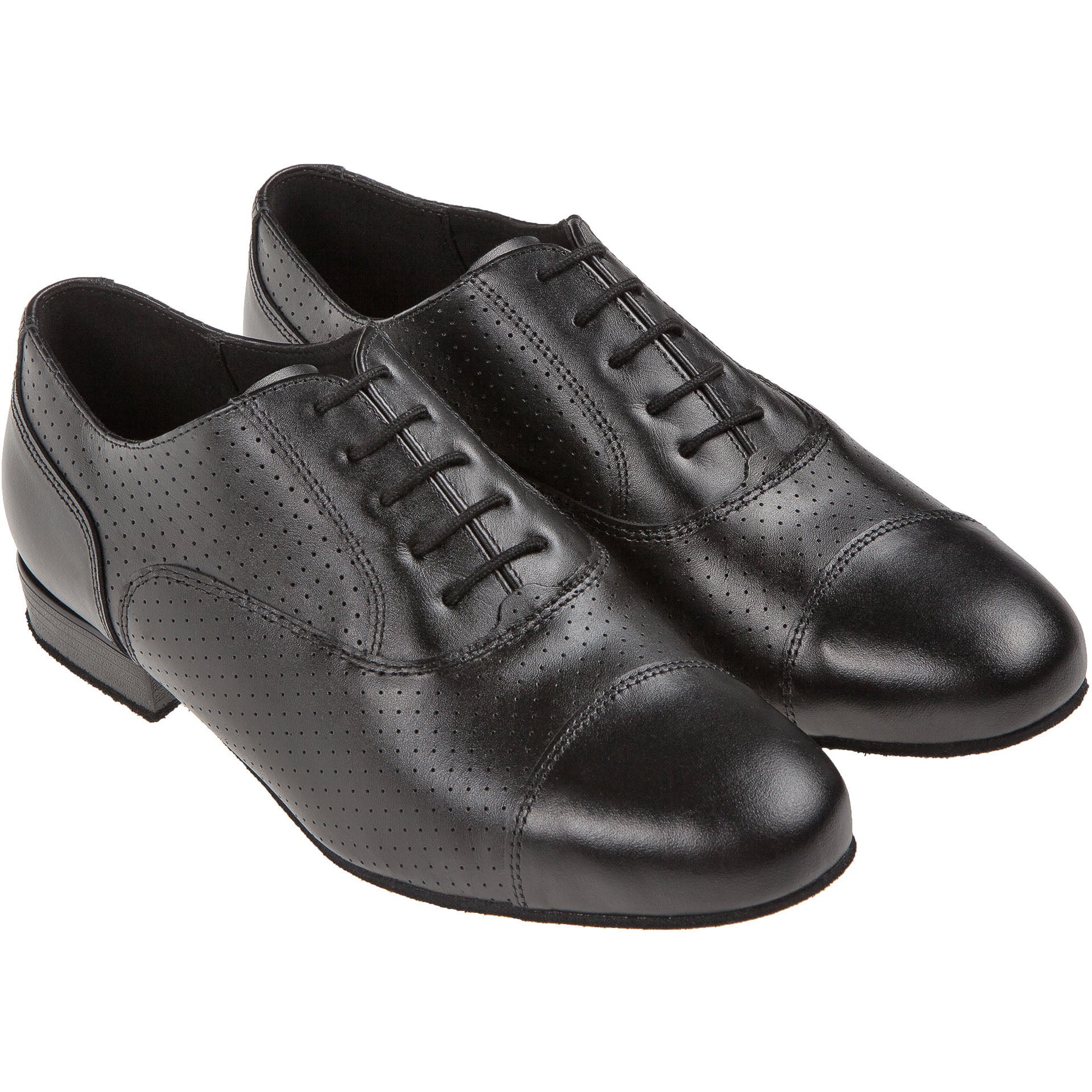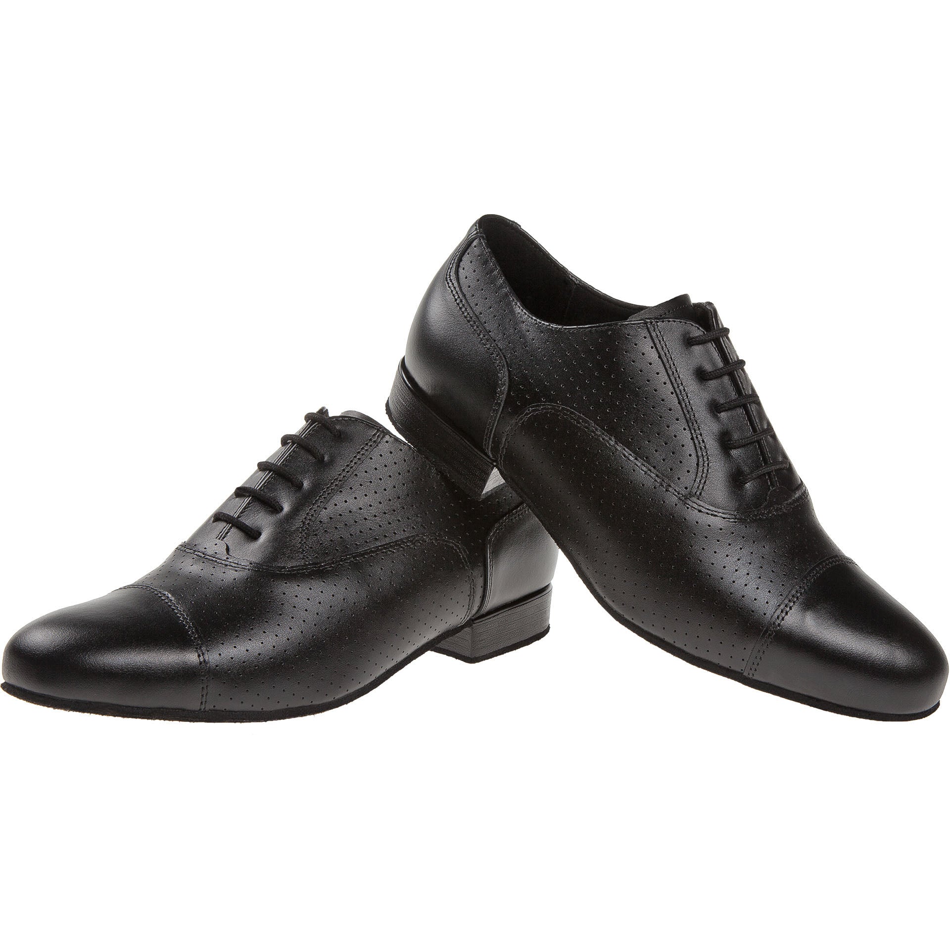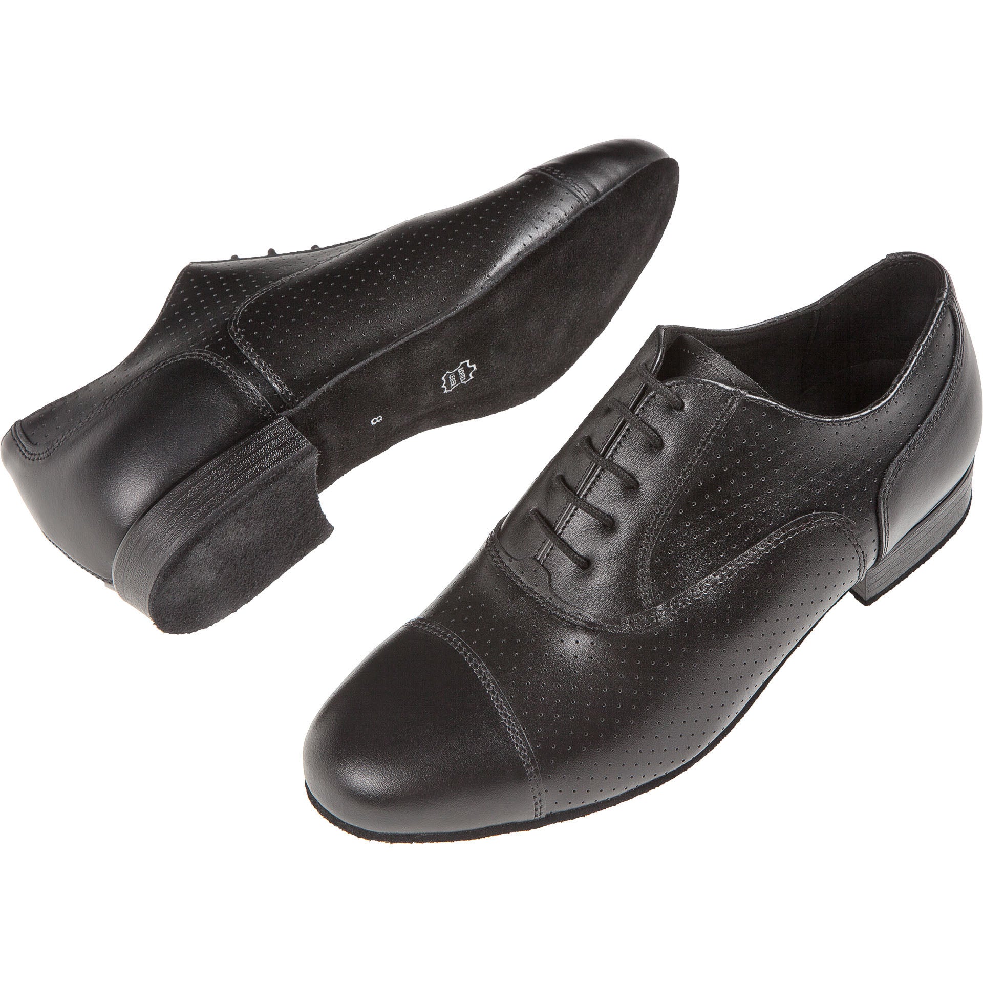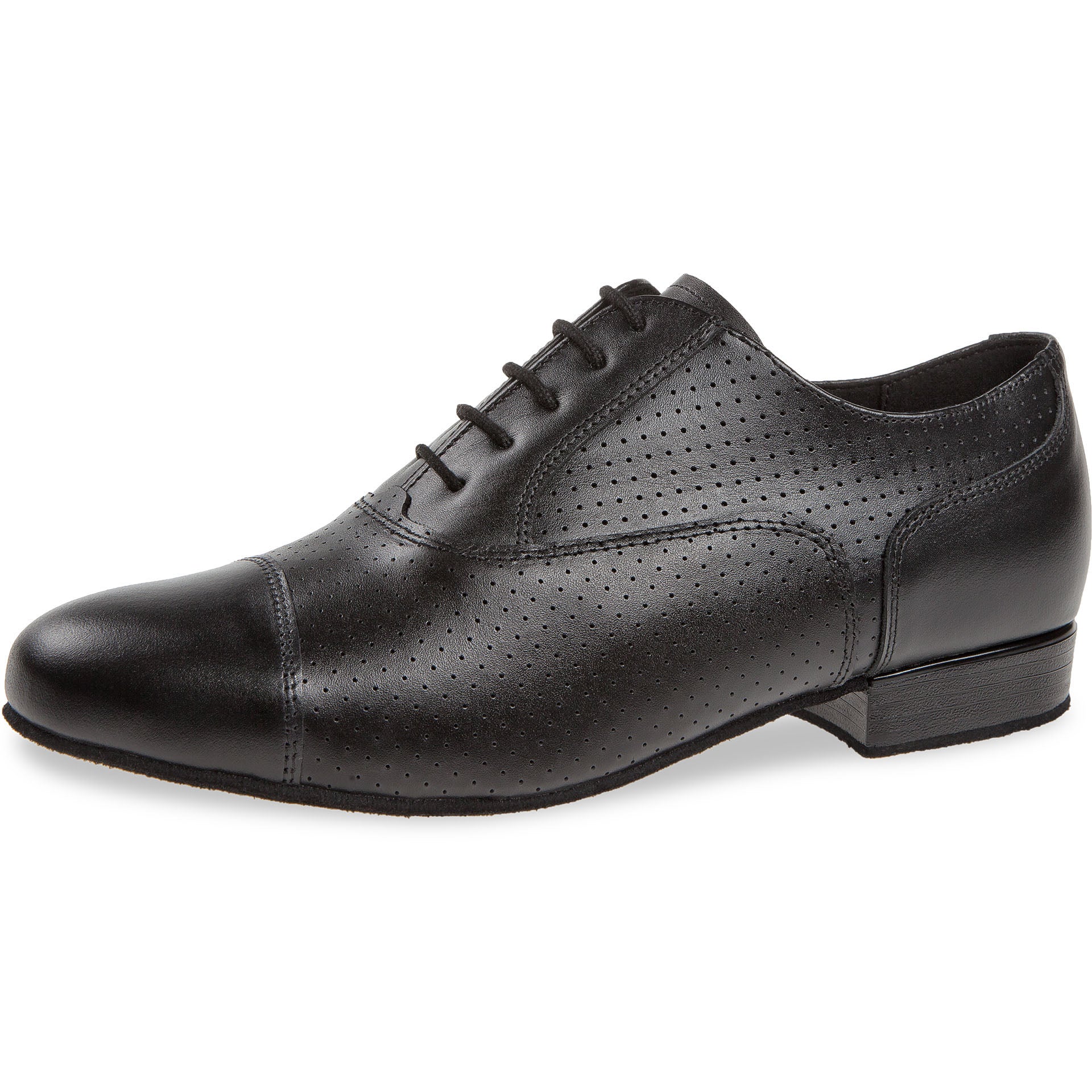 Dieser handgefertigte Tanzschuh von Diamant in der Half-Brogue Oxford Variante besticht durch erstklassige Qualität und Verarbeitung. Die 5-Loch-Schnürung gewährleistet sicheren Halt, während das Innenfutter aus italienischer Mikrofaser für ein atmungsaktives und feuchtigkeitsregulierendes Fußklima sorgt. Ein 2 cm hoher Absatz bietet komfortable Dämpfung an der Ferse. Das Obermaterial aus schwarzem Nappaleder mit eleganter Lochverzierung verbindet zeitlose Ästhetik mit hoher Strapazierfähigkeit.