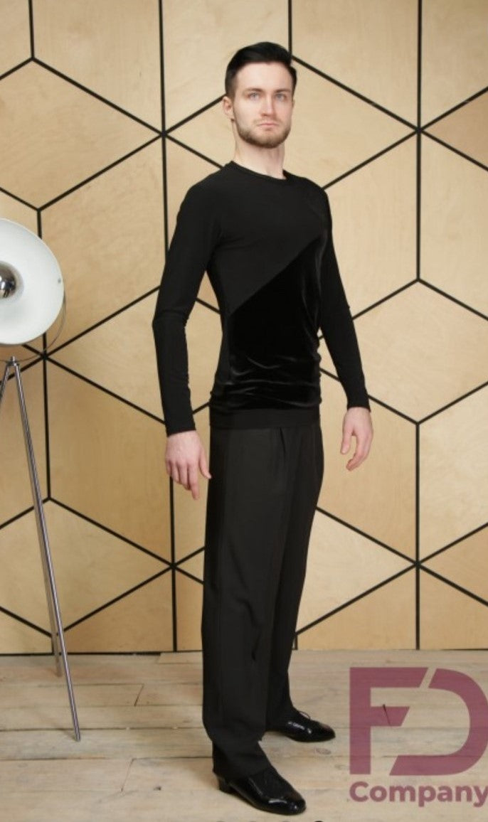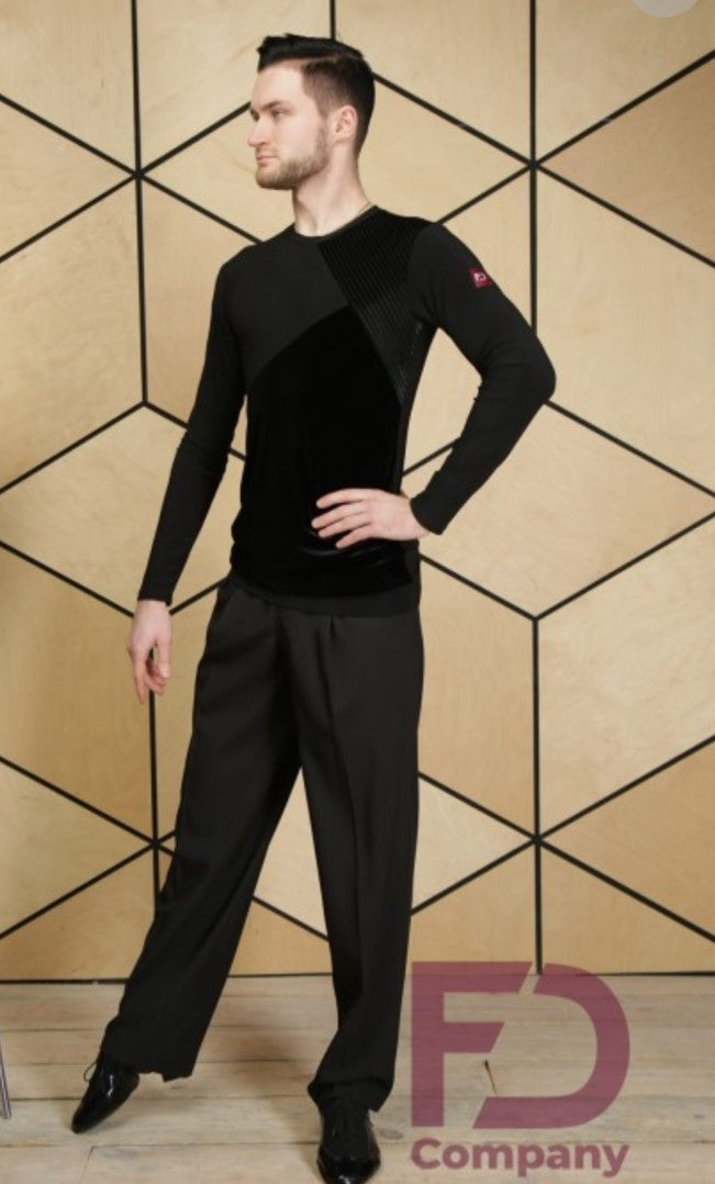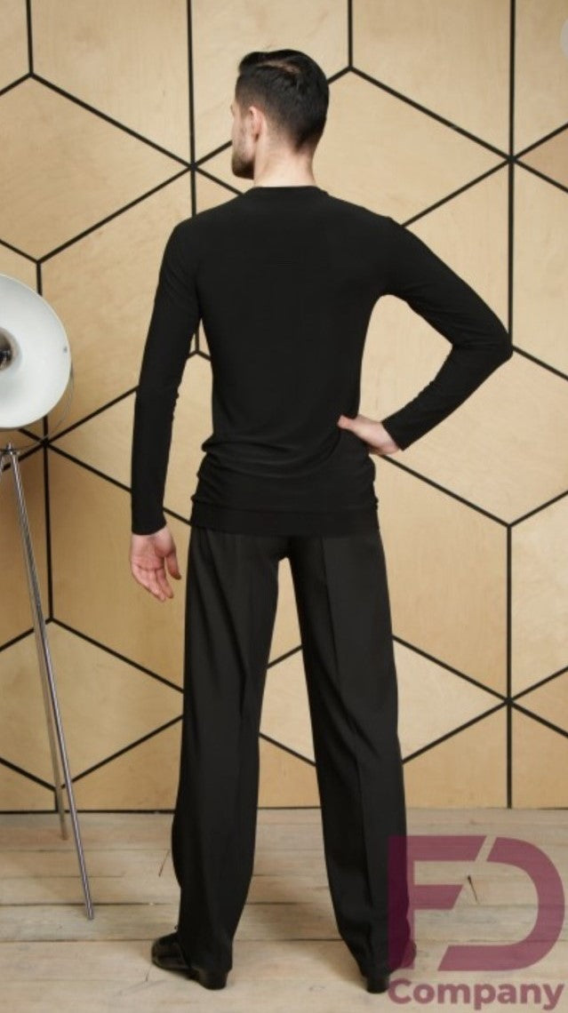 Elegantes Herrenhemd für Latin und Standard mit langen Ärmeln und rundem Hals mit Paspelierung. Das Jersey-Material bietet Komfort und Bewegungsfreiheit, während die Velour-Streifeneinsätze auf der Vorderseite für einen raffinierten Look sorgen. Ein genähter Bund an der Unterseite garantiert perfekte Passform. Ideal für Trainings- und Wettkampfeinsätze.
