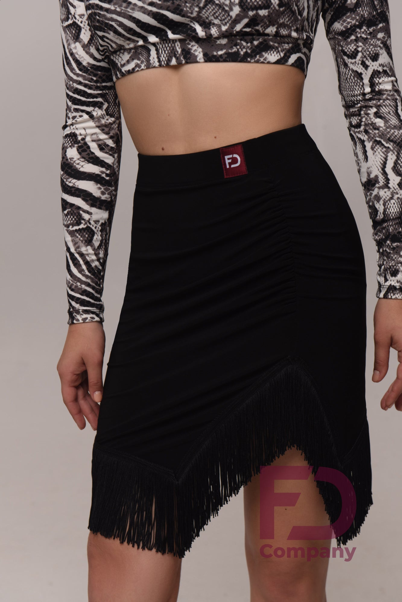Der 1319/1 FD Latein Rock ist speziell für lateinamerikanische Tänze konzipiert und bietet sowohl Funktionalität als auch ansprechendes Design. Gefertigt aus hochwertigem Öltrikot, zeichnet sich der Rock durch einen seitlichen Schlitz und elegant drapierte Elemente an der Vorderseite aus, die Bewegungsfreiheit und Dynamik unterstützen. Der asymmetrische Saum sorgt für einen stilvollen Look und wird durch zwei Lagen 10 cm langer Fransen betont, die bei jeder Bewegung auffällig mitschwingen. Ein 3-4 cm breites, elastisches Bündchen gewährleistet optimalen Halt und Komfort während des Tanzens. Zusätzlich ist ein eingenähtes Höschen integriert, das sicheren Sitz garantiert und ein unbeschwertes Tragegefühl ermöglicht. Dieser Rock vereint Performance und Ästhetik für professionelle Tänzerinnen.