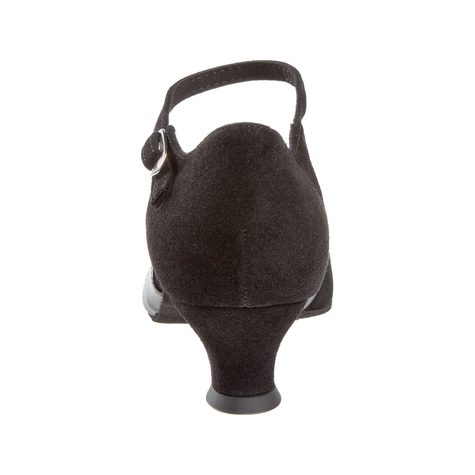 Diamant Damen Standard Tanzschuhe 141-014-008 sind präzise in Deutschland handgefertigt und vereinen Komfort mit Funktionalität. Das einzigartige Vorderblatt besteht aus zwei übereinanderliegenden Flügeln, die sich flexibel dem Fuß anpassen und so optimalen Halt bieten. Der zehengeschlossene Pumps verfügt über ein stufenlos einstellbares Druckknopfschnallen-Fersenriemchen, das ein schnelles und sicheres An- und Ausziehen ermöglicht. Speziell für kräftige Füße gefertigt, bietet das Diamant Comfort Fußbett zusammen mit dem standfesten 4,2 cm hohen Spanish Absatz mit großer Auftrittsfläche Stabilität und sicheren Stand beim Tanzen. Die Innenauskleidung aus italienischer Premium-Microfaser sorgt für Atmungsaktivität und effektive Feuchtigkeitsabsorption, während die Obermaterialien aus hochwertigem schwarzem Velourleder und Lackleder durch Weichheit und Strapazierfähigkeit überzeugen. Dieser Tanzschuh vereint handwerkliche Präzision mit optimalem Tragekomfort für anspruchsvolle Tänzerinnen.
