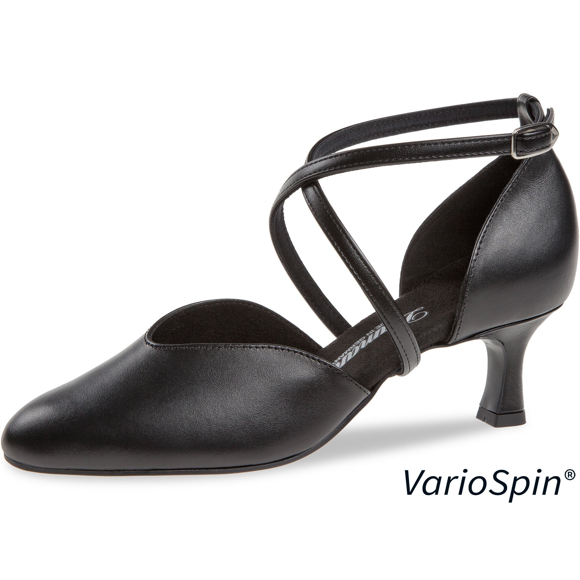 Diese handgefertigten Diamant Damen Standard Tanzschuhe aus Deutschland zeichnen sich durch einen abgerundeten V-Ausschnitt aus. Der geschlossene Pumps verfügt über eine stufenlos verstellbare Druckknopfschnalle an einem überkreuzten Fersenriemchen, die ein schnelles An- und Ausziehen ermöglicht. Der Schuh wird in der Normalweite mit einem eleganten 5 cm Flare Absatz gefertigt. Das Innenfutter besteht aus atmungsaktivem, feuchtigkeitsabsorbierendem italienischem Mikrofaser, während das Obermaterial aus hochwertigem italienischem Rindnappa-Leder gefertigt ist.