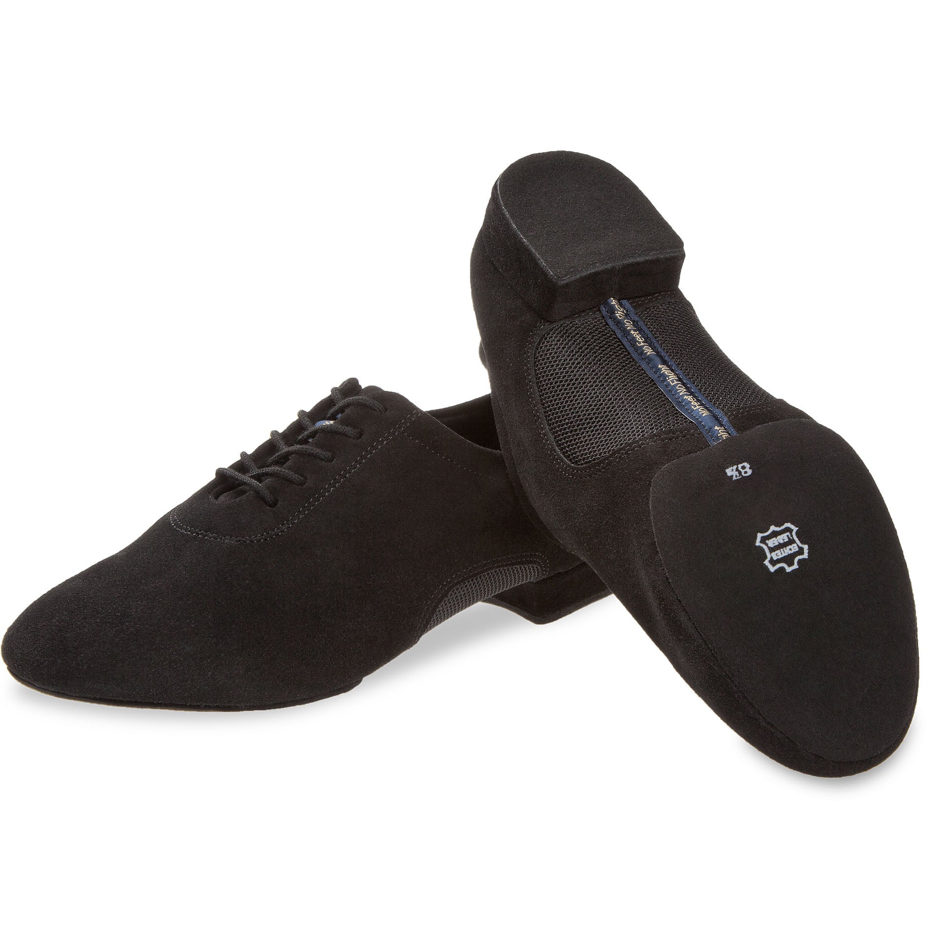 Dieser in Deutschland handgefertigte Herren-Turnier Tanzschuh besticht durch seine erstklassige Qualität. Der VarioPro Standard-Tanzschuh verfügt über eine geteilte Laufsohle und ein Multiflex-Fußbett, das maximale Flexibilität bietet. Gefertigt mit einer geschlossenen 5-Loch-Schnürung und einen gepolsterten Schaftrand. Er wird in Normalweite produziert und ist mit einem stoßdämpfenden 1,8 cm hohen Absatz ausgestattet. Das Innenfutter besteht aus atmungsaktivem, feuchtigkeitsabsorbierendem Mikrofasermaterial italienischer Premium-Herstellung, während die Obermaterialien aus schwarzem Veloursleder und Mesh aus hochwertigen, weichen italienischen Stoffen gefertigt sind.